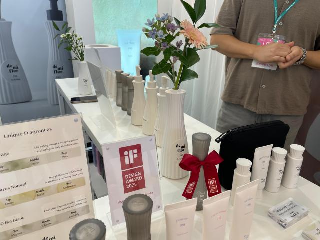 身体护理品牌de mi flor以花卉提取物为核心,打造浪漫与功效兼具的护肤系列产品。当天展出产品强调天然香氛和肌肤舒缓功效,包装酷似白瓷花瓶,用完可作花瓶进行二次利用,品牌也以此荣获2025年度德国iF产品设计奖。