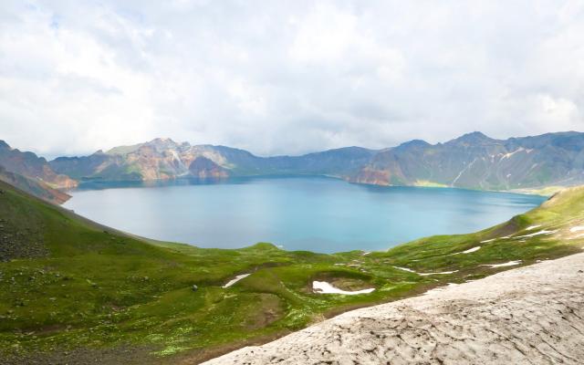 天池风景可谓四面皆美。宁静的湖水被群山环抱,转身望去,奇岩怪石铺满天际,无论身处哪个角度,长白山都展现出一种无法言喻的壮丽与神圣。