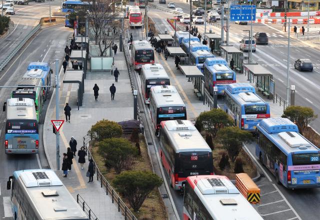 首尔公交结束罢工恢复正常运行13日,在首尔地方劳动委员会举行的谈判上,首尔市内公交工会与资方达成一致,持续两天的首尔市内公交罢工结束,自15日首班公交起恢复正常运行。 【图片提供 韩联社】